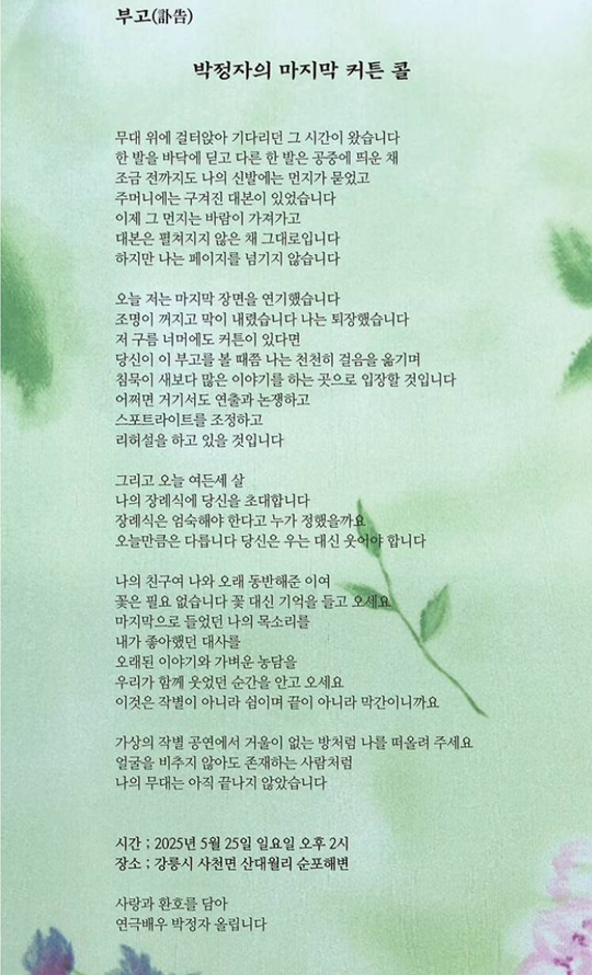 배우 박정자씨가 자신이 장례식에 초대했다.